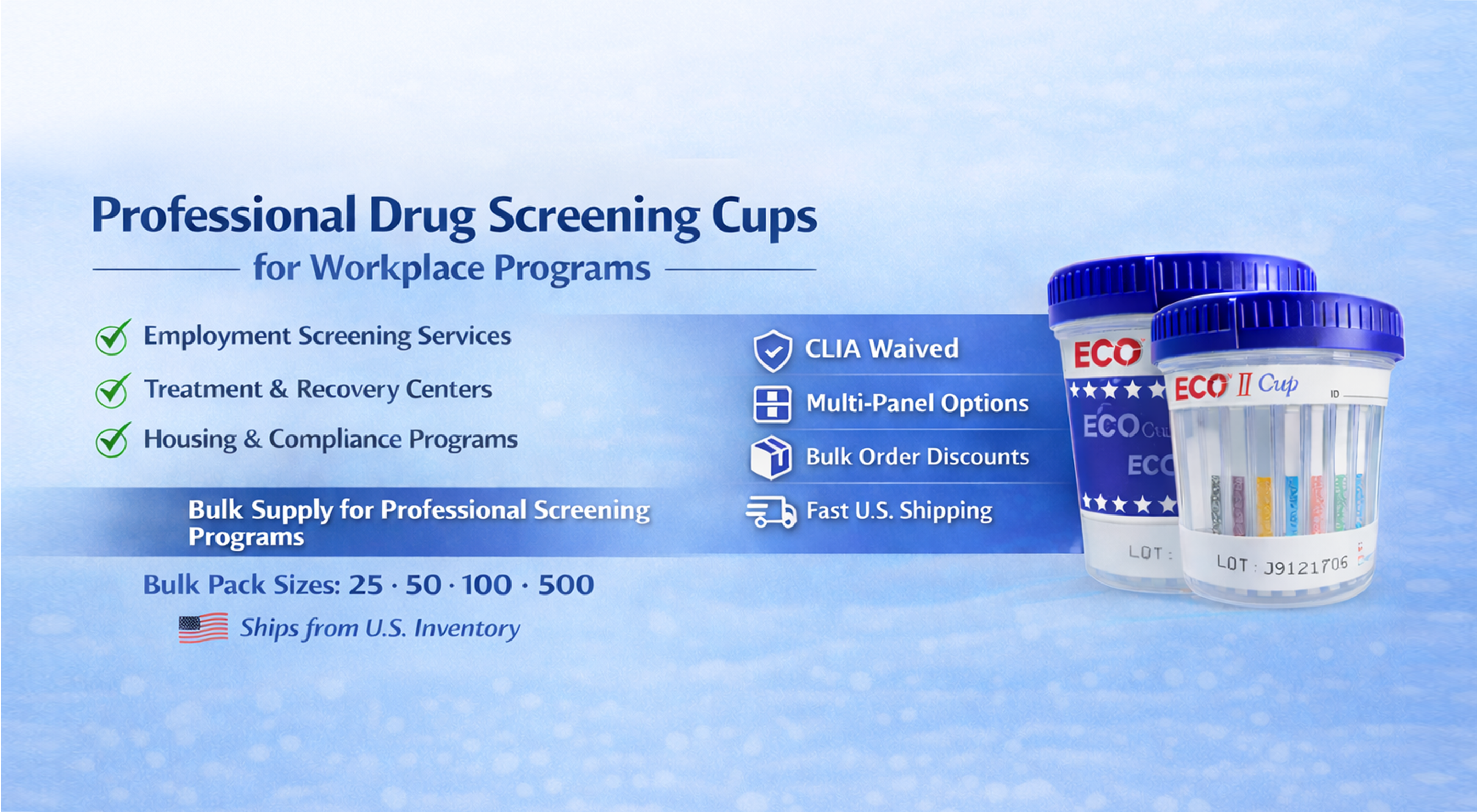Screening supplies used by treatment centers and recovery programs for routine monitoring and compliance screening.